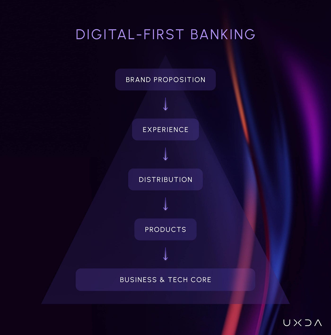→ Distribution → Products → Core) signals a different philosophy of what a bank is and whom it serves.